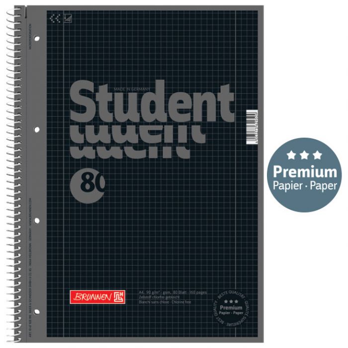 BLOK KOLEGIJ A4 KARO 80L PERFORACIJA PLUS 4RUPE COLOR CODE BRUNNEN 10-67928 190 CRNI