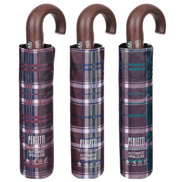 KIŠOBRAN AUTOMATIK (OTVARANJE PLUS ZATVARANJE NA GUMB) SKLOPIVI S DRVENOM RUČKOM TECHNOLOGY PERLETTI 217