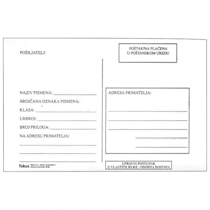 30,69 €KUVERTE B6-BB STRIP S POVRATNICOM B-32 PK100 FOKUS
