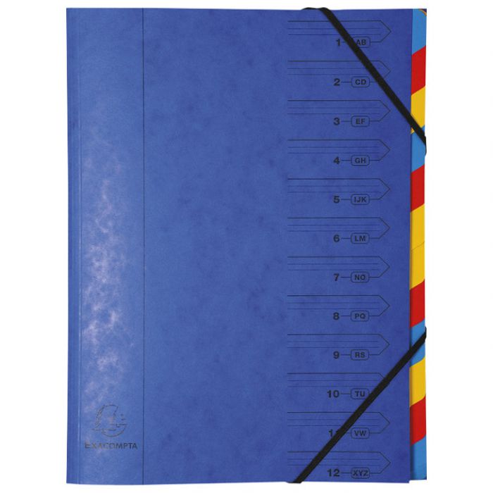 MAPA ZA ODLAGANJE SPISA 12 PREGRADA S GUMICOM KARTON EXACOMPTA 54122E PLAVA