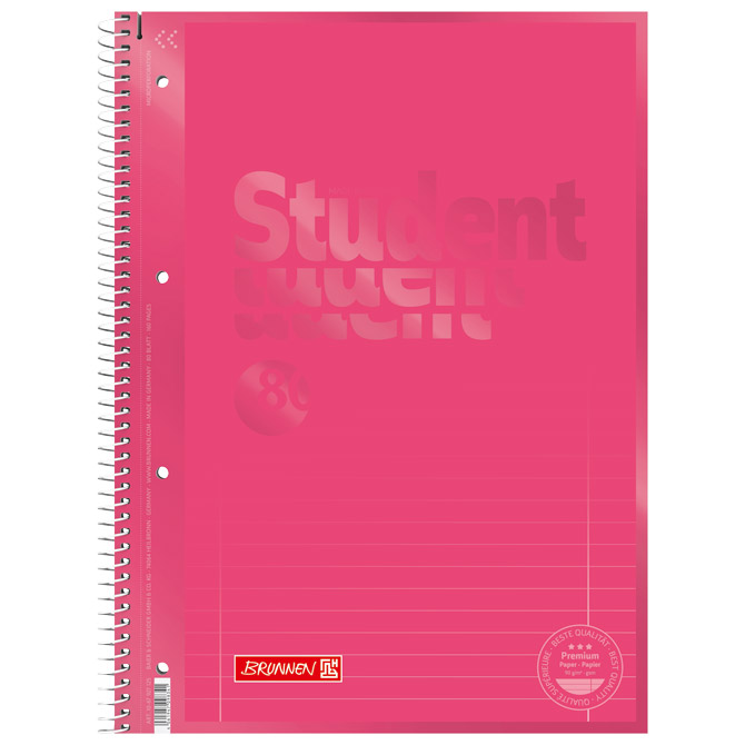 Blok kolegij A4 crte 80L perforacija+4rupe Color Code Brunnen 10-67927 125 roza