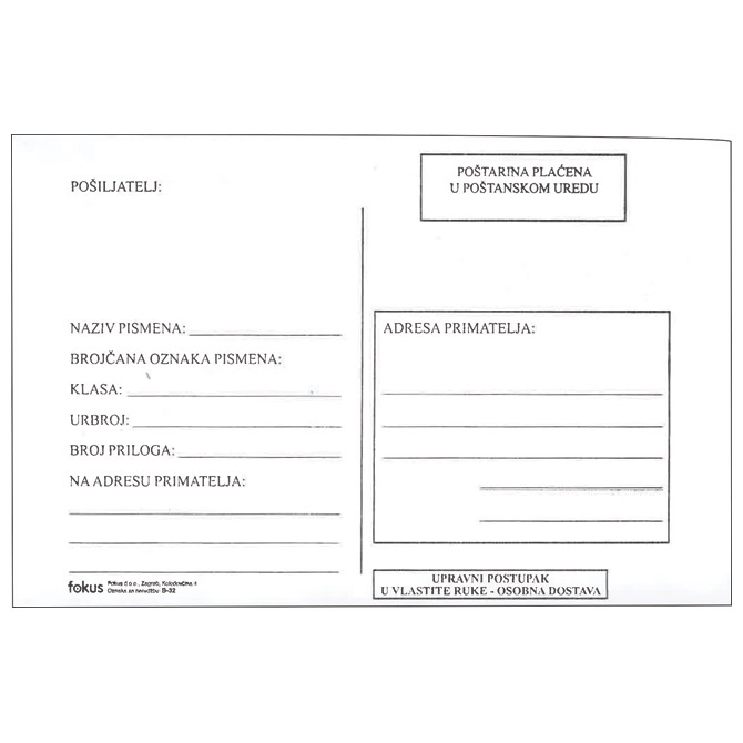 Kuverte B6-BB strip s povratnicom B-32 pk100 Fokus