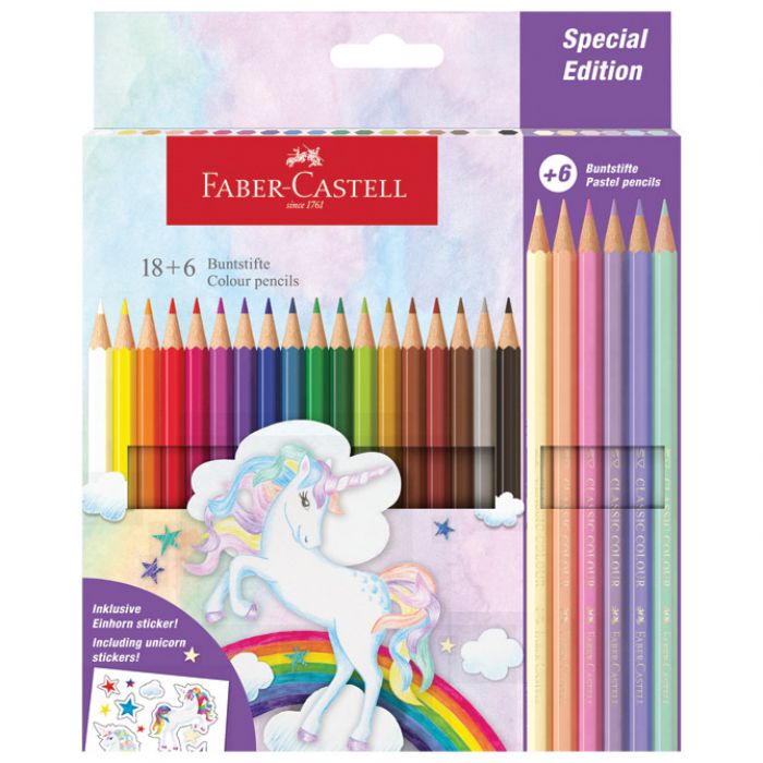 BOJE DRVENE 18BOJA PLUS 6BOJA DRVENIH PASTEL UNICORN FABER CASTELL 111221 BLISTER