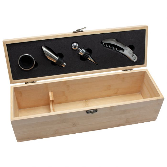 2,31 €SET – KUTIJA ZA VINO ZA 1 BOCU PLUS PRIBOR 4 DIJELA – BAMBUS KUTIJA