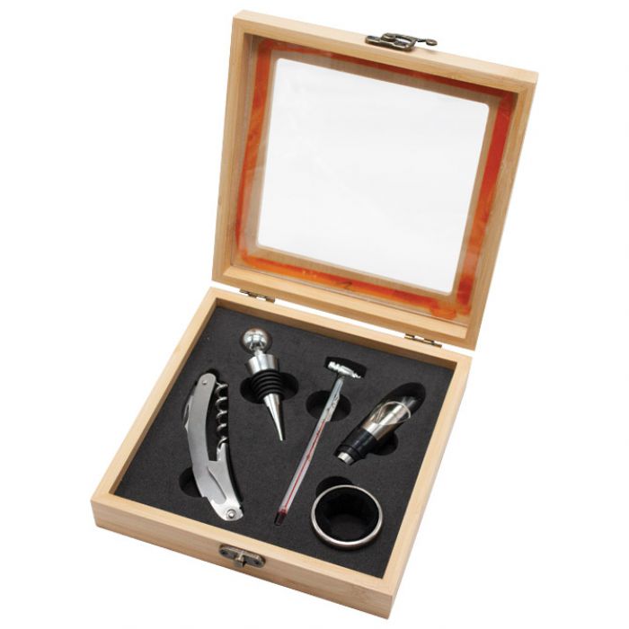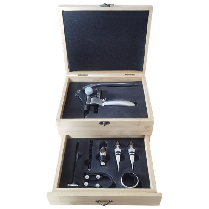 SET ZA VINO – 6 DIJELOVA U DRVENOJ KUTIJI JM038