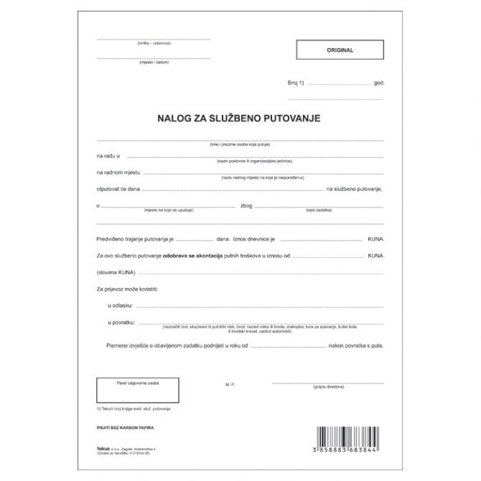 OBRAZAC F-26/NCR PUTNI RADNI LIST ZA TERETNO MOTORNO VOZILO FOKUS