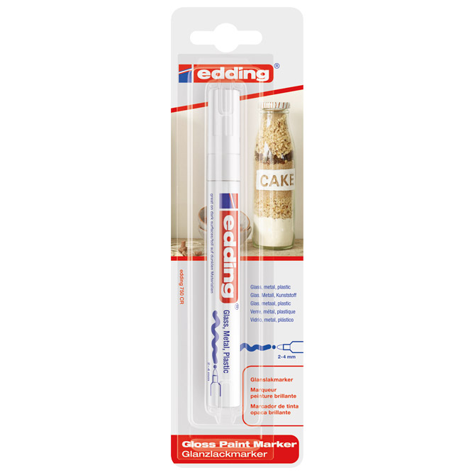 Marker permanentni sjajni lakirajući 2-4 mm Edding 750/1 bijeli blister