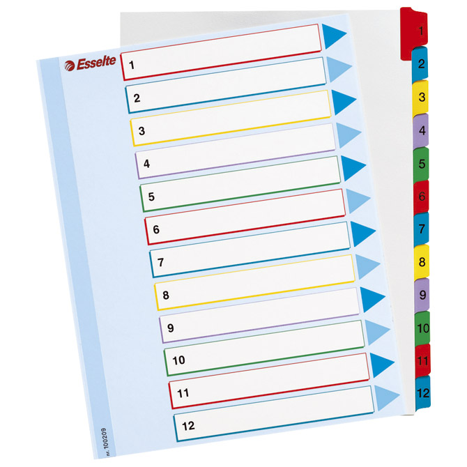 Pregrada plastična A4 brojevi 1-12 Esselte 100106 siva