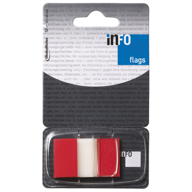 Zastavica 25×43 mm 50L Global Notes 7728-74 crveno-prozirna blister