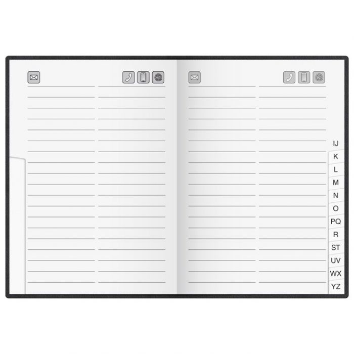 dimenzija: 100×145 mm; 128 stranica; plastificiran indeks (A-Z); fleksibilne korice