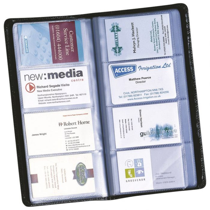 kapacitet: 128 kartica; dimenzija: 130×270 mm; za vizitke dimenzije 63×95 mm; 4 vizitke po stranici; 1 stupac – 4 reda