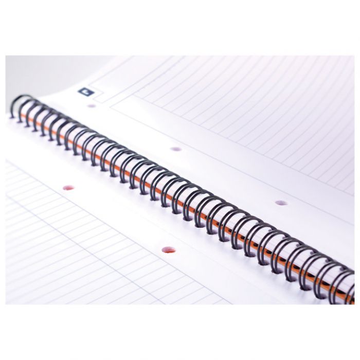 A4 s 4 rupe i perforacijom; tvrde korice; 80 listova; sa zaglavljem i dvostrukim marginama, OPTIK PAPER+®, jedinstvena udobnost pisanja, tinta ne prolazi kroz papir; kompatibilan sa scribzee aplikacijom za skeniranje, organiziranje i dijeljenje bilješki; dvostruki spiralni uvez omogućuje 360° okretanje i potpuno pisanje svake stranice; ekstremno stabilna kartonska naslovnica pruža dodatnu zaštitu bilješki