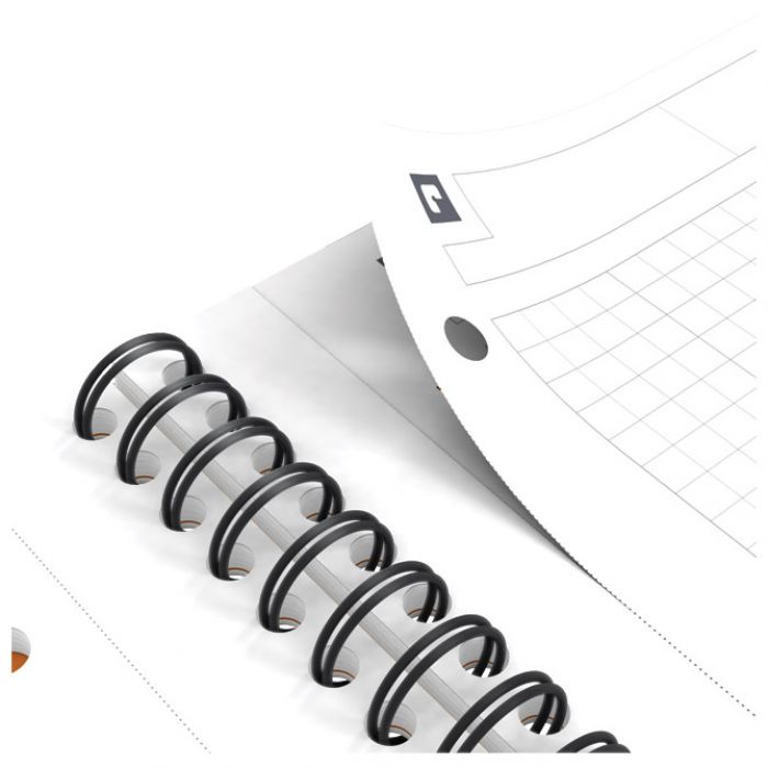 A4 s 4 rupe i perforacijom; tvrde korice; 80 listova; sa zaglavljem i dvostrukim marginama, OPTIK PAPER+®, jedinstvena udobnost pisanja, tinta ne prolazi kroz papir; kompatibilan sa scribzee aplikacijom za skeniranje, organiziranje i dijeljenje bilješki; dvostruki spiralni uvez omogućuje 360° okretanje i potpuno pisanje svake stranice; ekstremno stabilna kartonska naslovnica pruža dodatnu zaštitu bilješki