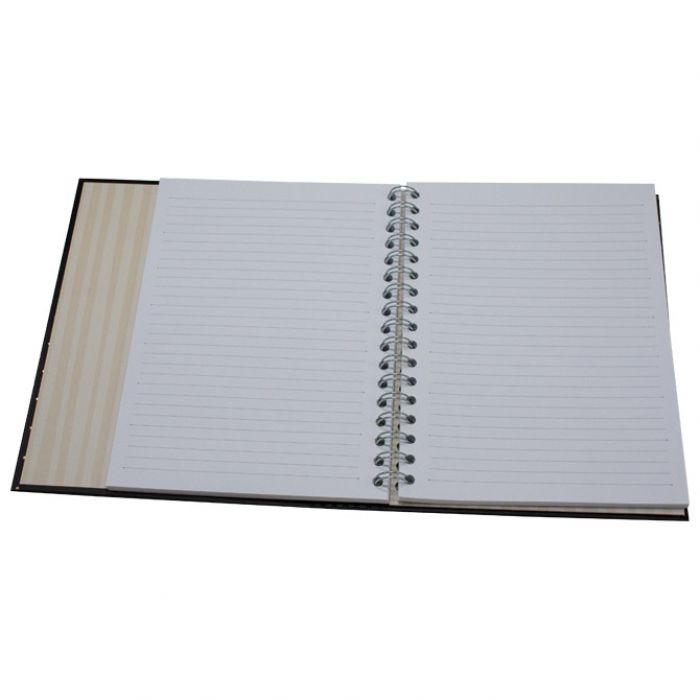 format: B5; dimenzija: 16,5×22,5 cm; crte; tvrdi uvez; 96 listova; 90 g/m2; skrivena spirala; s gumicom