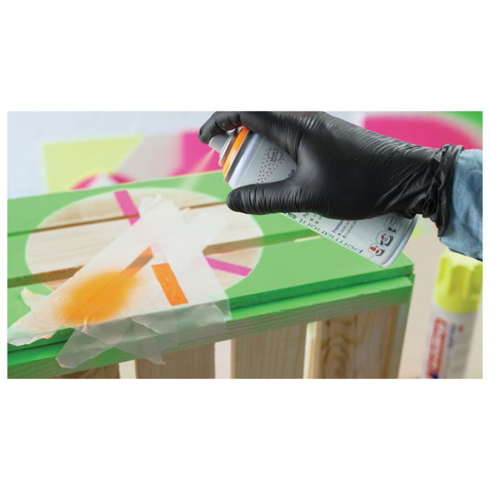 permanentna; za bojanje: papira, kamena, drva, tapeta, tekstila, metala, stakla, keramike i plastike; pogodno za stiropor no potrebno je nanijeti podlogu (primer); brzo se suši; za upotrebu na otvorenim i u zatvorenim prostorima; velika pokrivenost: 200 ml za otprilike 0,70 m2 do 1 m2 površine; potpuno suho za ~30 minuta (za ~1-3 minute dovoljno suho da se prašina ne lijepi); 200 ml