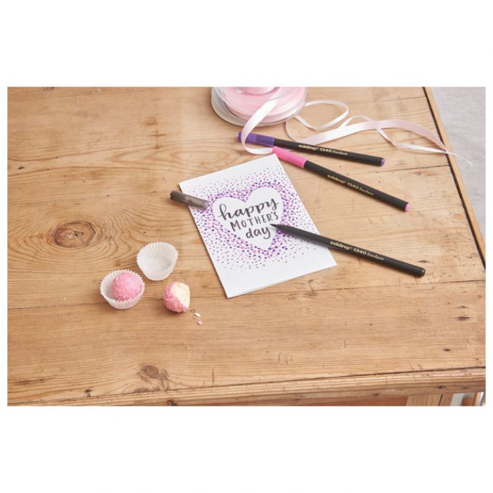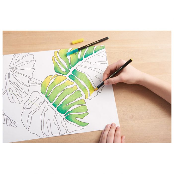 mekan i fleksibilan vrh od vlakana za pisanje, bojanje i crtanje kojim možete napraviti sitne detalje i široke poteze bez napora, čak i na velikim površinama; tinta na bazi vode je topiva u vodi dok se ne osuši; brzosušeća boja odlikuje se visokom svjetlosnom postojanošću; tinta ne prolazi na drugu stranu papira; neutralan miris; poklopac se može spremiti na kraj flomastera kako bi se spriječio rizik od gubitka; blister