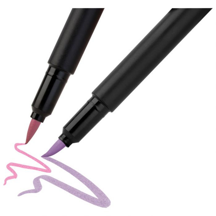 brushpen (vrh kao kist); jako mekani vrh; jednostavno i brzo mijenjanje širine poteza vrha prilikom upotrebe; idealno za male crteže i slike; periv sa većine tekstila; u kartonskoj kutiji; blister