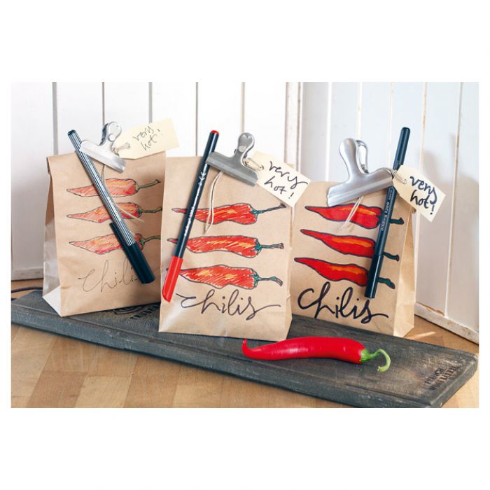 okrugli vrh sa metalnim ojačanjem; širina ispisa: 0,3 mm; za pisanje i dekoriranje na svijetlom papiru; brzo se suši; tinta na bazi vode