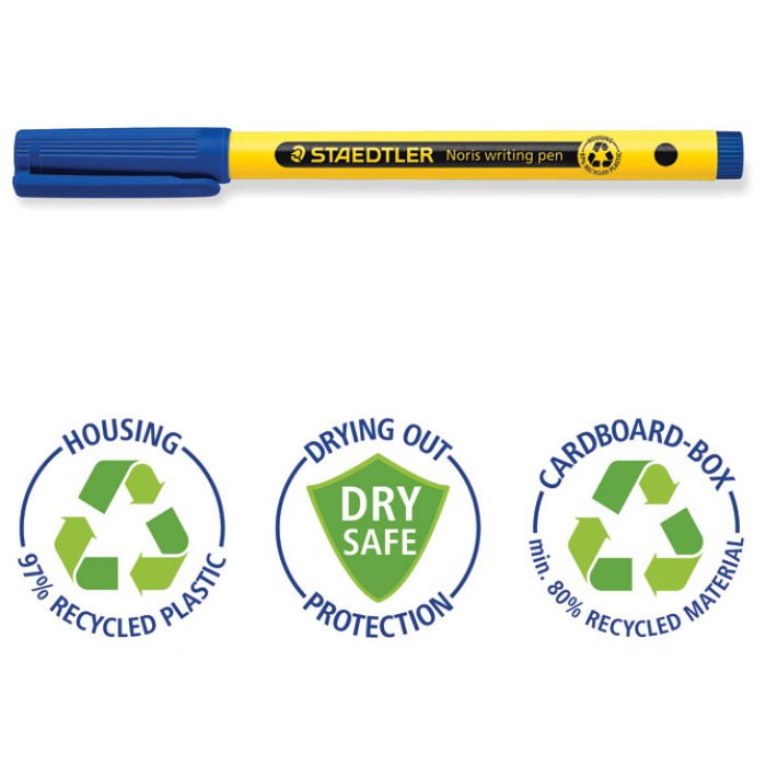 čvrsti i otporni vrh; širina ispisa: 0,6 mm (F); tijelo i poklopac su izrađeni od 97 % reciklirane plastike; tinta na bazi vode; može se isprati sa većine tipova tekstila; može biti nezatvoren danima bez isušivanja (dry safe); siguran rad u zrakoplovu zahvaljujući sustavu za izjednačavanje tlakova koji sprječava istjecanje tinte (airplane safe)