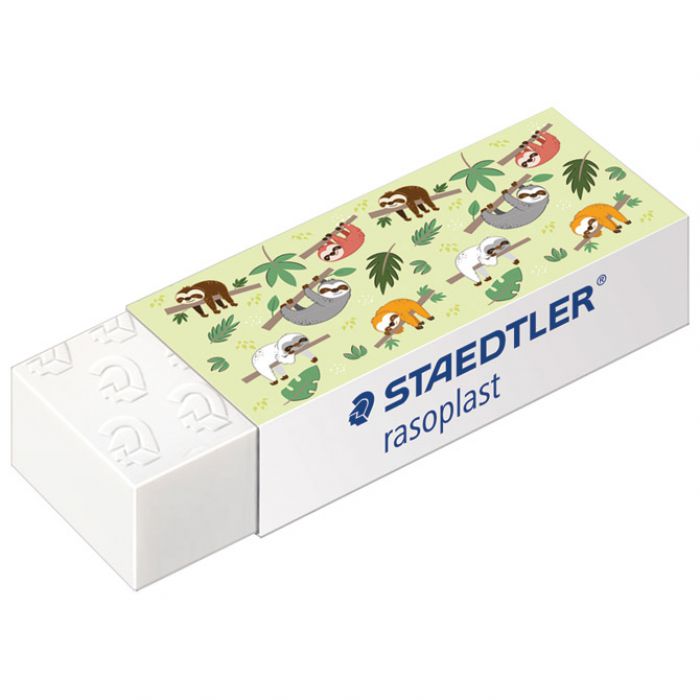 svaka gumica je omotana u foliju; za grafitnu olovku; s omotom; bez lateksa; visokokvalitetna; iznimno lagano brisanje bez mrvljenja; 3 motiva: ljenivci, galaksija i duga; blister