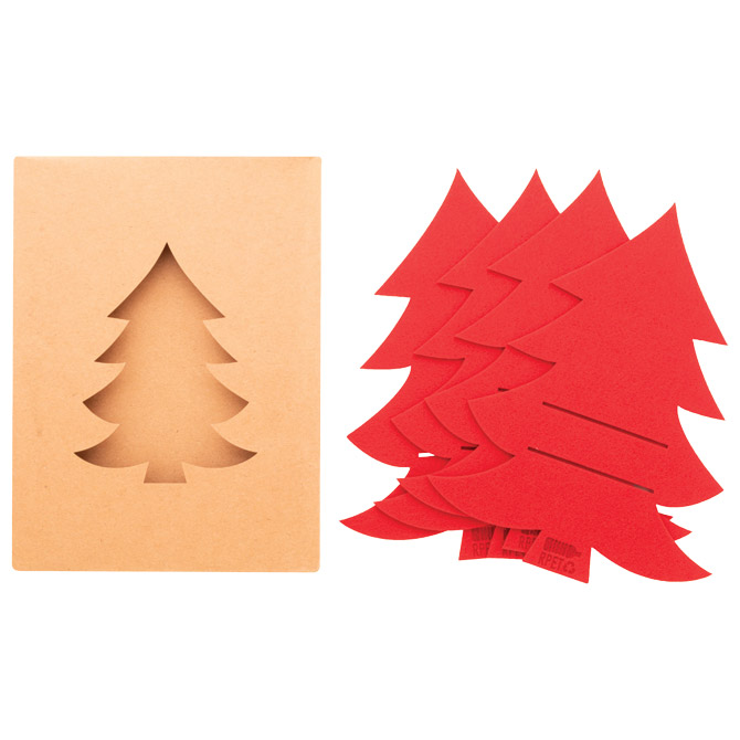 Set od 4 komada držača za pribor za jelo u obliku božićnog drvca od RPET filca. Pakirano u kutiji od kraft papira.