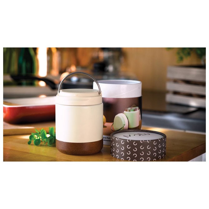 Posuda termo MoLu Porto Cervo 3983 metalna s drvenim podnožjem 400ml bijela