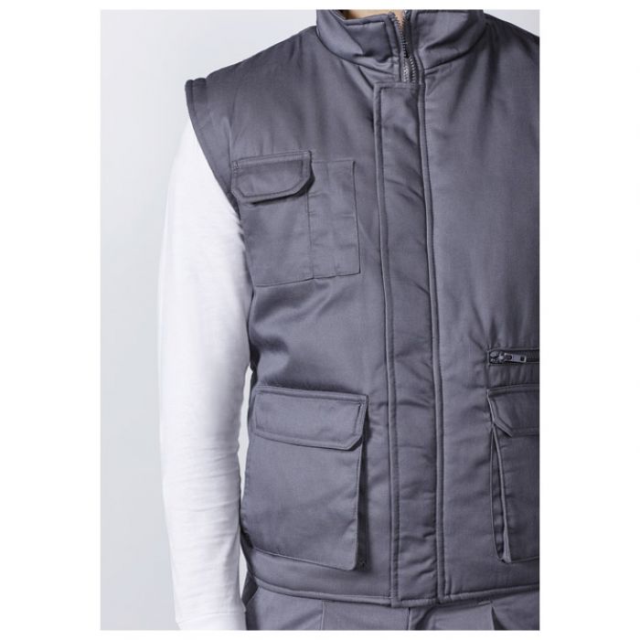 muški; na zip; dodatno zatvaranje na čičak; duža leđa; 3 džepa na preklop, 1 džep na zip te 2 džepića za olovke s vanjske strane i 1 džep sa zatvaranjem na čičak s unutarnje strane; 2 remenčića za podešavanje širine leđa; 200 g/m2; sirovinski sastav: 85 % poliester, 15 % pamuk i unutrašnja strana 100 % poliester