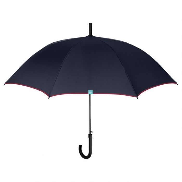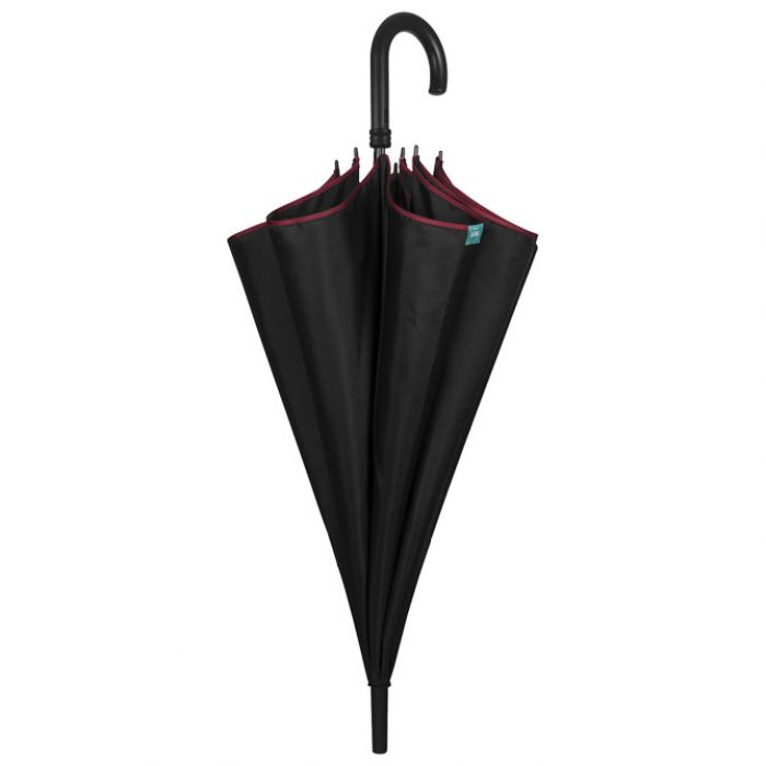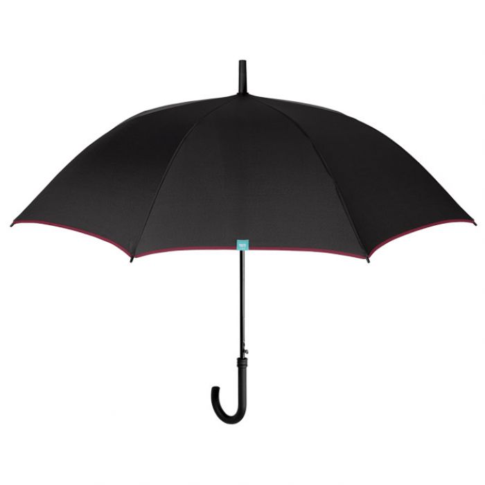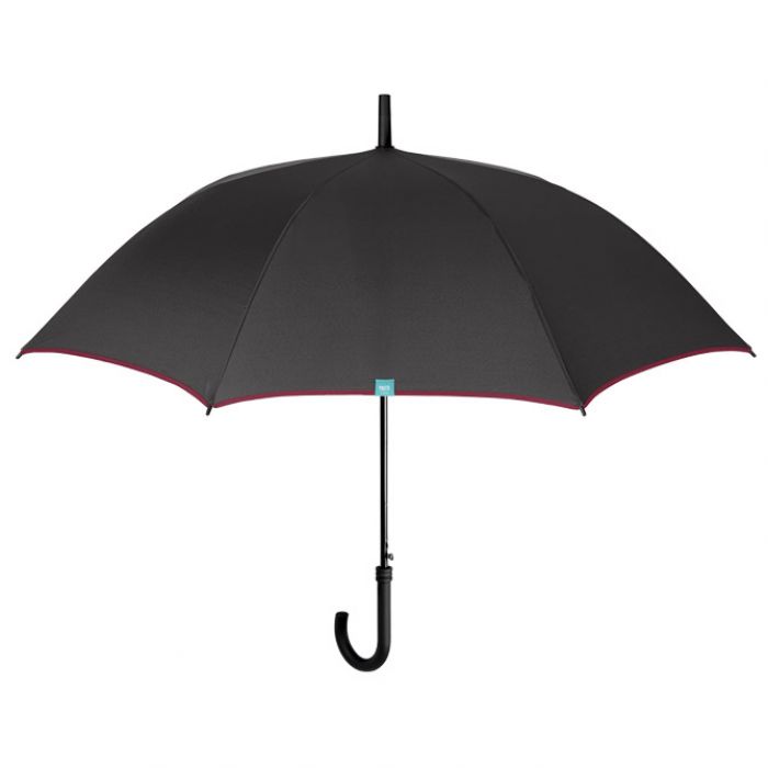 automatik; s plastičnom ručkom; polumjer zatvorenog kišobrana: 65 cm; 8 panela; fi: 116 cm; otporan na vjetar; žice od fiber glass-a; od mikrofibre (odbija kapljice kiše i brzo se suši); 3 boje: crna, plava i siva (sa bordo rubom platna)