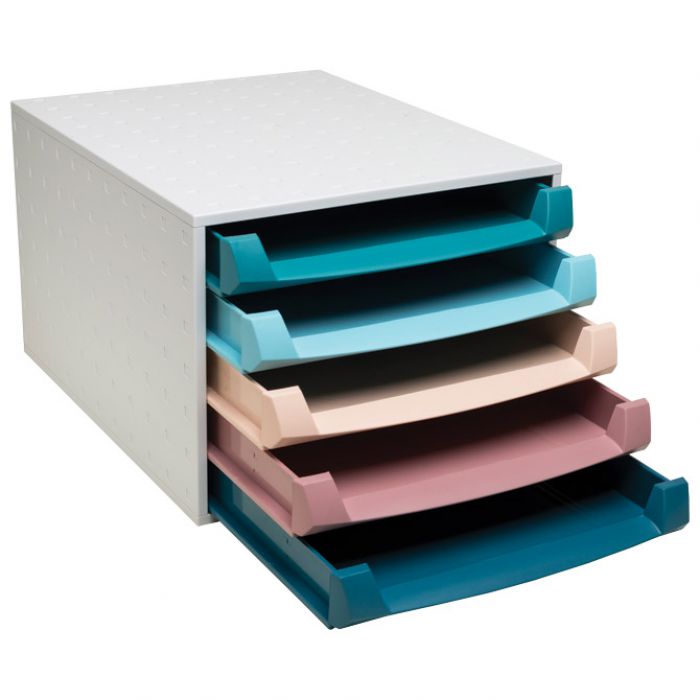Jedinica za arhiviranje Exacompta Box ima 5 ladica za spremanje dokumenata formata A4 i A4+, elastične džepove 24×32 cm ili kuverte velikog formata. Ovaj proizvod je prikladan za radno mjesto, kućni ured ili školu.