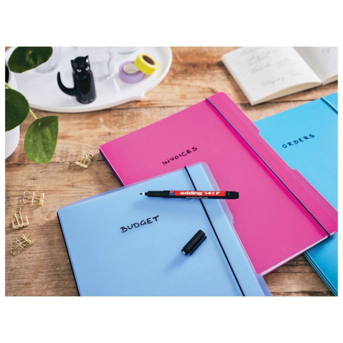 permanentni; okrugli vrh; širina ispisa 0,6 mm; vodootporan; otporan na svjetlo; brzo se suši; može se korigirati alkoholom; za pisanje po raznim materijalima (folija, staklo, plastika…)