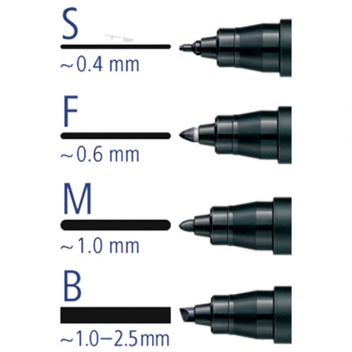 permanentni; 4 širine ispisa: 0,4 mm, 0,6 mm, 1 mm i 1 & 2,5 mm; spremnik i poklopac PP; vodootporan; otporan na UV svjetlost; brzo se suši (pa je pogodan za ljevake); ne razmazuje se; slabog mirisa; primjenjuje se na gotovo svim površinama (papir, karton, folija, plastika, staklo, porculan, drvo, koža, kamen, CD,..); može biti nezatvoren danima bez isušivanja (dry safe); siguran rad u zrakoplovu zahvaljujući sustavu za izjednačavanje tlakova koji sprječava istjecanje tinte (airplane safe); ekološka tinta (bez ksilena i toulena); tijelo je izrađeno od 97 % reciklirane plastike