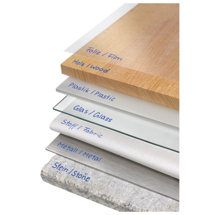 širina ispisa: 0,4 mm (S – Super fine); vodootporan; jako otporan na svjetlo; tinta izvrsno prianja i suši se trenutačno; trajna tinta za gotovo sve glatke površine: staklo, folije, CD-e, DVD-e, plastiku, kamen, drvo, metal; može se brisati s ugrađenom posebnom gumicom; intenzivne boje i jasne linije