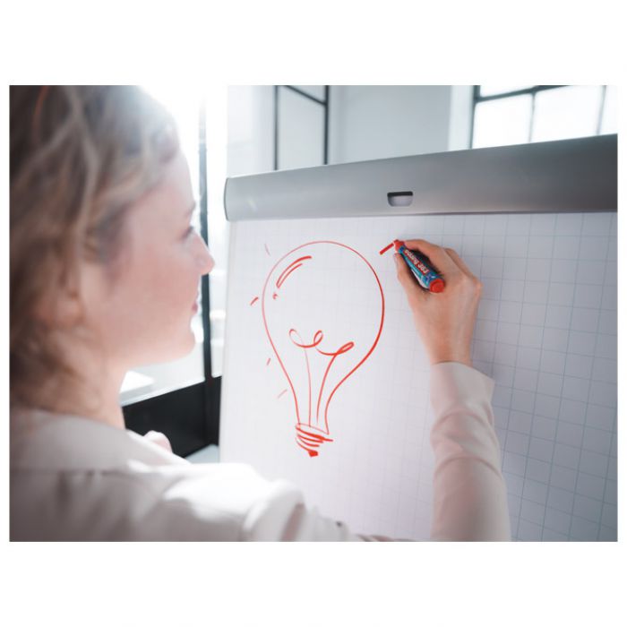 s mogućnošću ponovnog punjenja; klinasti vrh; širina ispisa: 1-5 mm; tuš ne probija na druge stranice; marker može biti bez poklopca do 6 tjedana, a da se ne osuši; slabog mirisa; za pisanje po flipchart bloku, posterima, kartonu,…