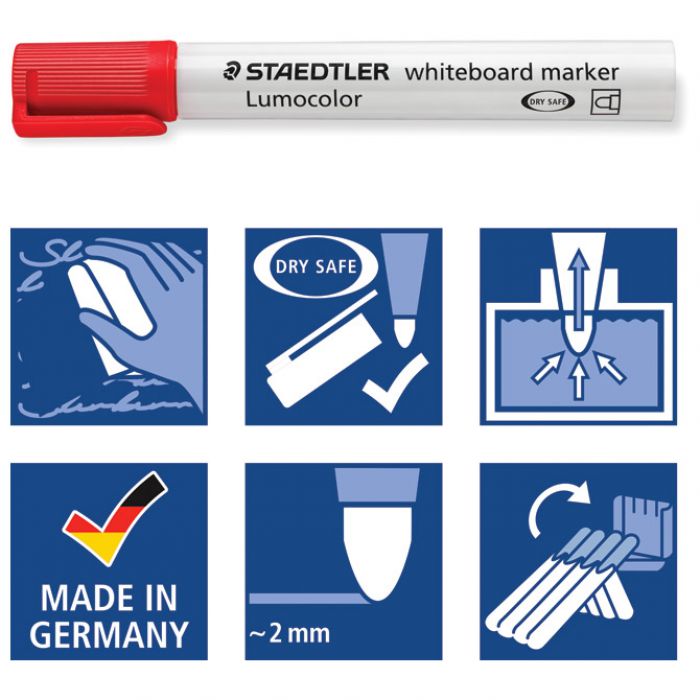 MARKER ZA BIJELU PLOČU 2 MM RECIKLIRANI LUMOCOLOR STAEDTLER 351-2 CRVENI