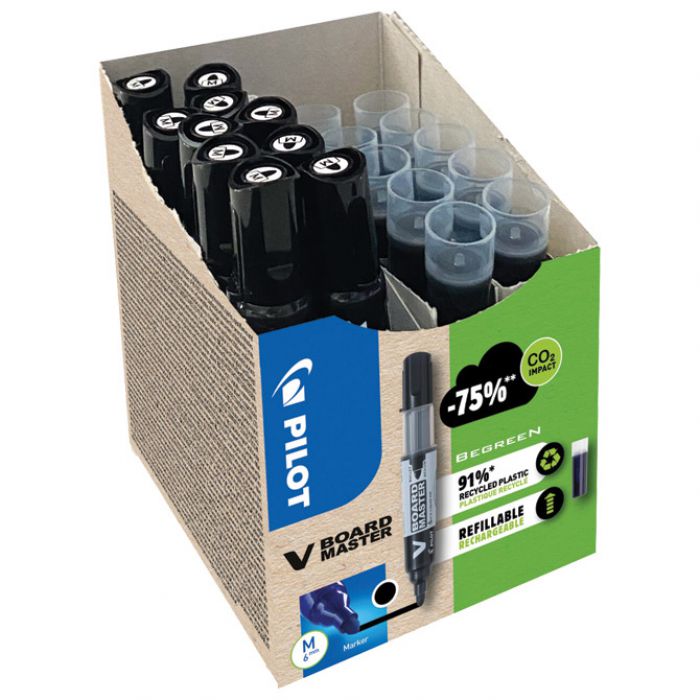SET MARKER ZA BIJELU PLOČU 2,3 MM V BOARD MASTER BEGREEN PK10 PILOT PLUS REFILI (5 PLUS 5 GRATIS) CRNI
