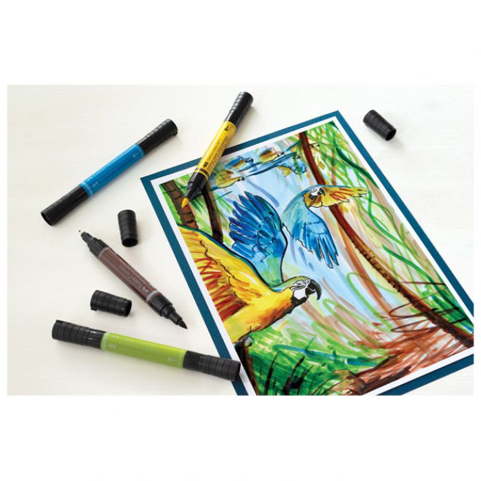 marker s dva vrha: mekani(brush pen) i fineliner 0,8 mm za konture i detalje; tinta India na bazi vode; set od 5 boja