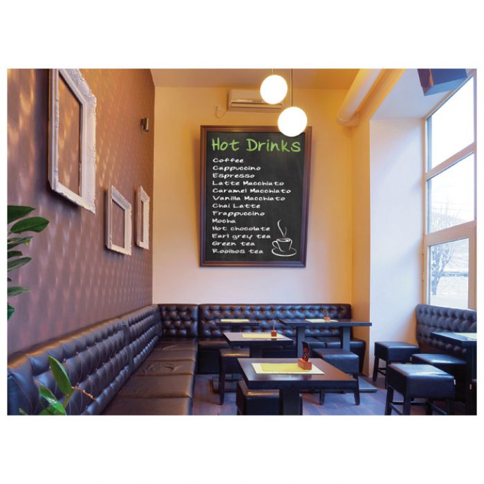 nepermanentni; klinasti vrh; širina ispisa 4-15 mm; tekuća kreda na bazi vode; otporan na svjetlo; za pisanje po glatkim površinama (staklo, prozor, tamna ploča…); briše se vlažnom krpom