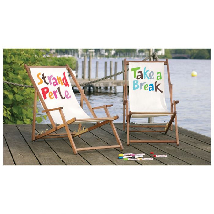 permanentni, pigmentni marker za majice (pamuk, svila, lan…); okrugli vrh; širina ispisa 2-3 mm; vodootporan; otporan na svjetlo; za fiksiranje glačati vrućom peglom bez pare; nakon fiksiranja otporan na pranje do 60° C; brzo se suši