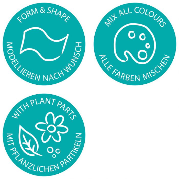 57 g; stvrdnjava se u pećnici (30 minuta na 110°C); mekana; lako se oblikuje; izvrsno se miješa sa Fimo soft, Fimo leather-effect i Fimo professional; pločica je podijeljena na 8 jednakih dijelova radi lakšeg kombiniranja boja; botanički efekt sa česticama biljaka; idealno za kreativne projekte sa romantičnim boho izgledom; za početnike i umjetnike amatere; idealna za izradu nakita, dodataka, predmeta za uređenje doma i sl.