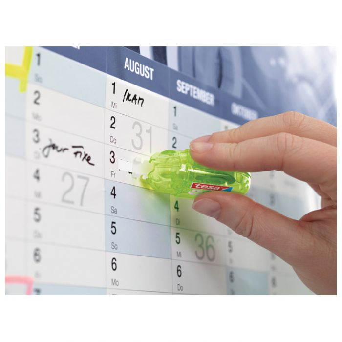 širina trake: 5 mm; duljina trake: 6 m; 100 % reciklirana plastika; sigurnosni poklopac; boje: narančasta, plava, roza i zelena