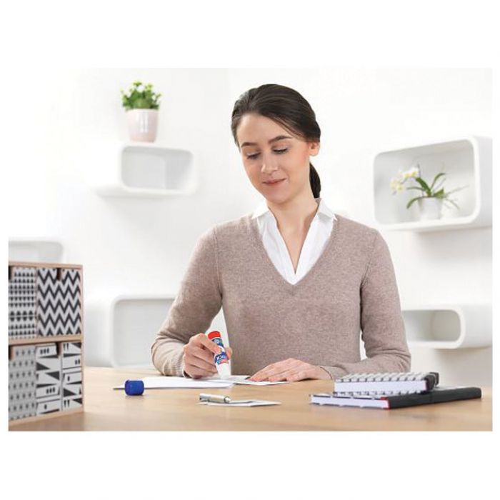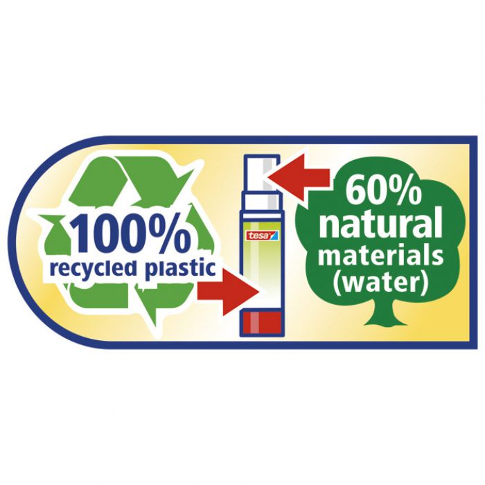bez otapala; formula ljepila sastoji se od 60 % prirodnih sastojaka (uključujući vodu); lijepi papir, karton i fotografije; bez mirisa; lako se nanosi; ima praktičan poklopac koji onemogućava kotrljanje; može se prati ručno; ambalaža je izrađena od 100 % reciklirane plastike; 10 g
