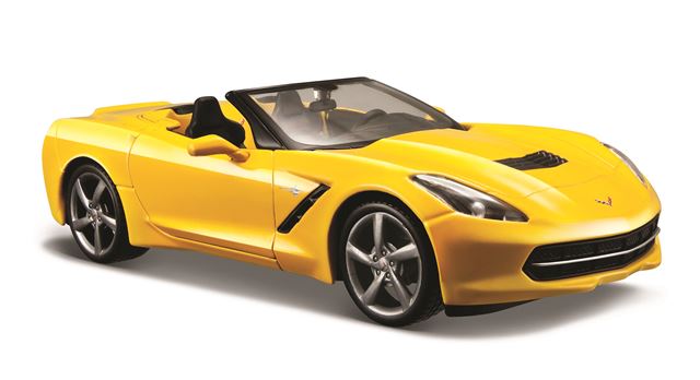 Automobil 1:24 2014 Corvette Stingray Convertible. Metalni automobil – replika stvarnog modela. Metalni s plastičnim dijelovima. Vrata automobila se mogu otvoriti. Izrađen s mnoštvom detalja. Boja: crvena ili žuta. Dob 3+.