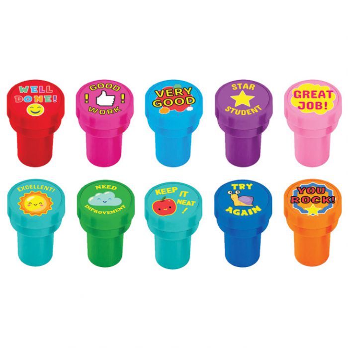 okrugli; natpis na engleskom jeziku: very good, good work, great job, try again i sl.; 10 motiva