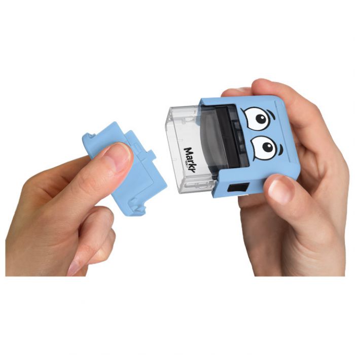 Pečat za tekstil My Marky slagalica za označavanje odjeće namijenjena je kupcima koji traže jednostavan i brz način za označavanje odjeće za vrtić, školu, kamp, izlete ili za sportske i druge aktivnosti. Jednostavno složite željeni tekst i možete početi pečatirati odjeću ili čak druge upijajuće površine, poput školskih bilježnica, olovaka, ruksaka, papuča, pernica ili kutija za užinu. A djeca će lakše prepoznati odjeću označenu njihovom omiljenom slikom, što će spriječiti neželjene gubitke i zabune.