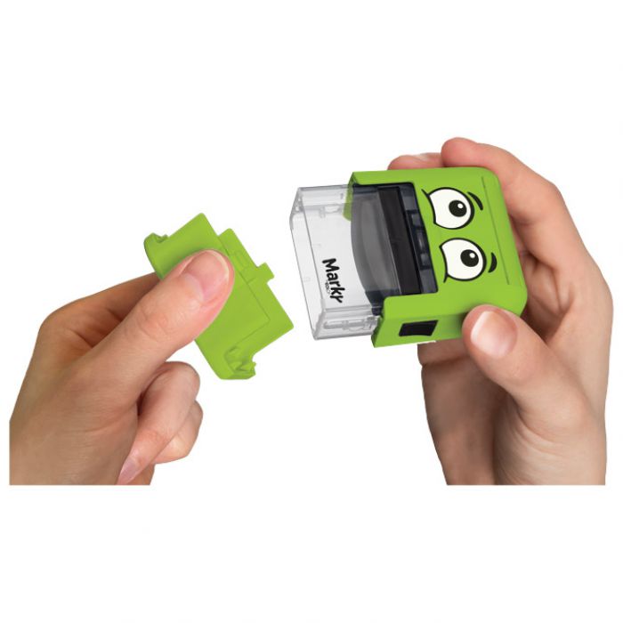 Pečat za tekstil My Marky slagalica za označavanje odjeće namijenjena je kupcima koji traže jednostavan i brz način za označavanje odjeće za vrtić, školu, kamp, izlete ili za sportske i druge aktivnosti. Jednostavno složite željeni tekst i možete početi pečatirati odjeću ili čak druge upijajuće površine, poput školskih bilježnica, olovaka, ruksaka, papuča, pernica ili kutija za užinu. A djeca će lakše prepoznati odjeću označenu njihovom omiljenom slikom, što će spriječiti neželjene gubitke i zabune.
