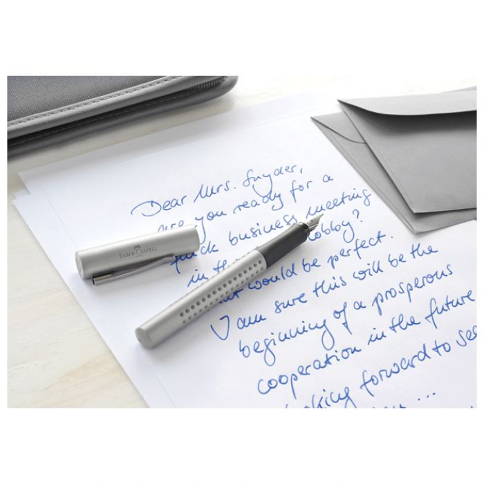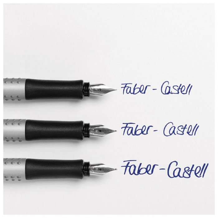 jedinstveni Grip dizajn; mekani grip za ugodnije pisanje; optimalna kombinacija tinte i vrha nalivpera omogućuje izuzetno glatko, nesmetano i lagano pisanje; metalna klipsa (srebrna) i vrh od nehrđajućeg čelika (srebrni); uravnotežena težina poklopca i kada je pričvršćena na stražnji kraj; pogodno i za ljevake; može se koristiti klasična patrona ili pumpica Faber Castell; u kartonskoj poklon kutiji
