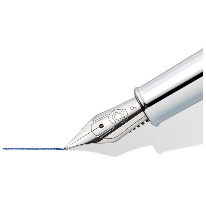 metalno; debljina pera F (fine); trokutasto; sa ugraviranim natpisom STAEDTLER na prstenu i STAEDTLER Mars na kapici; u kartonskoj poklon kutiji