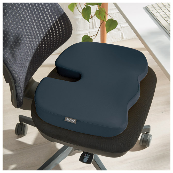 savršena podloga za sjedalo koja pomaže u stvaranju udobnog i aktivnog radnog prostora s bilo kojom stolicom; osmišljen za promicanje zdravog držanja, poboljšanje cirkulacije i ublažavanje pritiska na kralježnicu, pomoći će značajno smanjiti nelagodu, umor i ukočenost koji mogu biti posljedica dugotrajnog sjedenja ili zdravstvenih stanja kao što je išijas; idealno za korištenje kod kuće, u uredu ili čak u automobilu za maksimalnu udobnost; sa svojim minimalističkim dizajnom i mat završnim bojama, ovaj stilski ortopedski jastuk za sjedalo poboljšat će zdravlje i dobrobit stvarajući bez napora savršenu aktivnu radnu atmosferu; navlaka se može ukloniti i prati ručno radi higijene; testirano i preporučeno od strane njemačkog IGR instituta za zdravlje i ergonomiju, prema DIN 26800 EN ISO 15537; proizvodi Leitz Ergo Cozy nagrađeni su prestižnom njemačkom nagradom za dizajn 2022. godine; u pakiranju bez plastike; dimenzija: 455x355x75 mm; težina: 1,16 kg