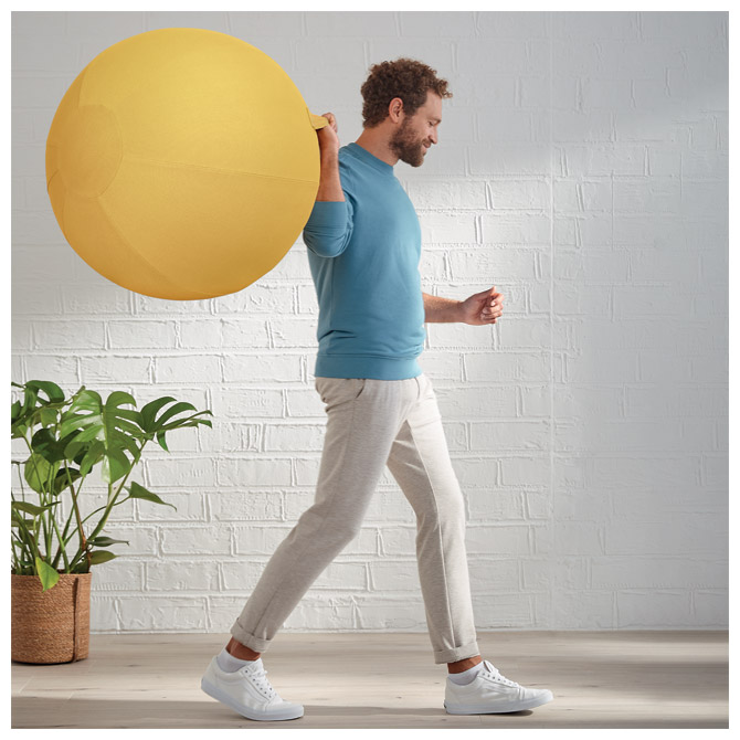 potiče pokrete mišića leđa, poboljšava držanje i ublažava bolove u leđima; idealno za korištenje kao dodatna radna stolica koja vas održava aktivnim dok radite; koristi se za vježbe kao što su: joga, vježbe s loptom za teretanu, vježbe za ravnotežu, istezanje leđa, fizioterapija i vježbe trbušnjaka; brzo i jednostavano za napuhavanje; dolazi s ručnom pumpom i 2 čepa; ima snažnu i izdržljivu ručku za lako prenošenje iz sobe u sobu; sa svojim minimalističkim dizajnom i mat završnim bojama, ova elegantna lopta za sjedenje poboljšat će zdravlje i dobrobit stvarajući savršenu aktivnu radnu atmosferu; navlaka se može ukloniti i prati ručno radi higijene; proizvodi Leitz Ergo Cozy nagrađeni su prestižnom njemačkom nagradom za dizajn 2022. godine; u pakiranju bez plastike; s robusnom unutarnjom kuglom bez ftalata, može izdržati do 100 kg; fi: 65 cm; težina: 1,92 kg