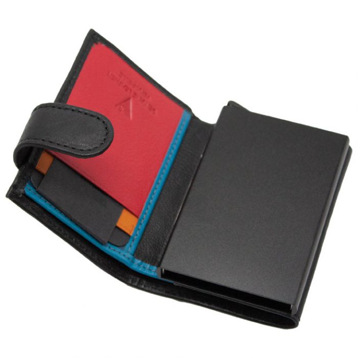 kožni; za kartice s RFID zaštitom; odjeljak za sitan novac; dimenzija: 10×7 cm; zatvaranje na gumb; u poklon kutiji